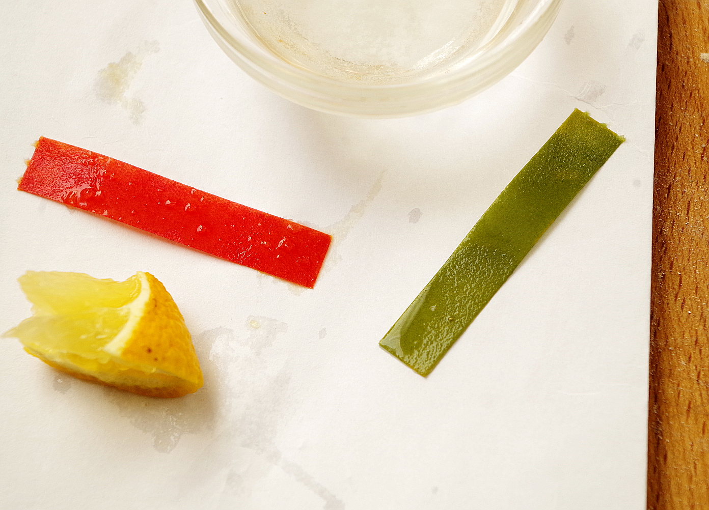 Чтобы показать наглядно, как работает лакмусовая бумага, я опустила одну в лимонный сок и она тут же покраснела, вторую в раствор пищевой соды, и она стала зеленой, тут разница в результатах очевидна!