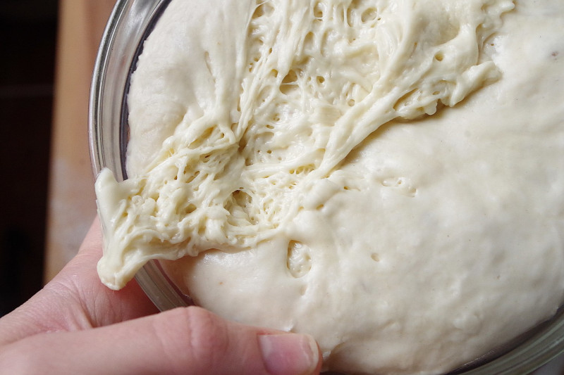 А если в процессе созревания клейковинный каркас закваски разрушился (мука слабая или температура брожения высокая или времени на созревание больше, чем нужно), то закваска будет не в состоянии удерживать газ внутри и будет тонуть, будучи при этом вполне созревшей (или перезревшей). Это, кстати, одна из причин, когда неопытным пекарям кажется, что закваска не созрела: не выросла на ожидаемое количество сантиметров, не показала пузырей, как на картинке, не сдала зачет, в общем. Особенно летом это актуально, потому что из-за жары все бродит активнее и активнее происходят разрушительные процессы и в закваске, и в тесте.