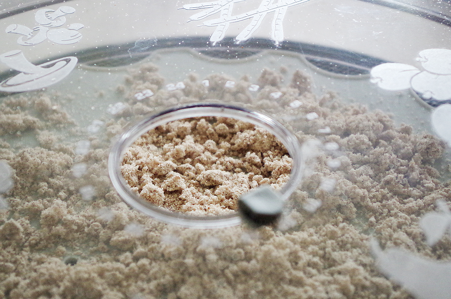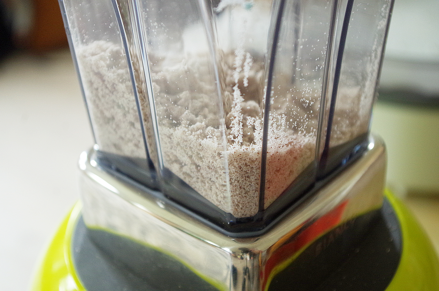 Как только кокосовая мука высохла, смололи ее в блендере, вот что получилось.