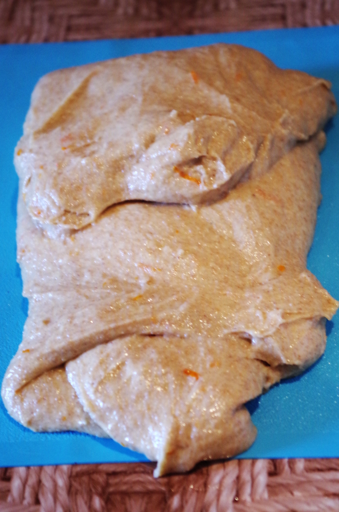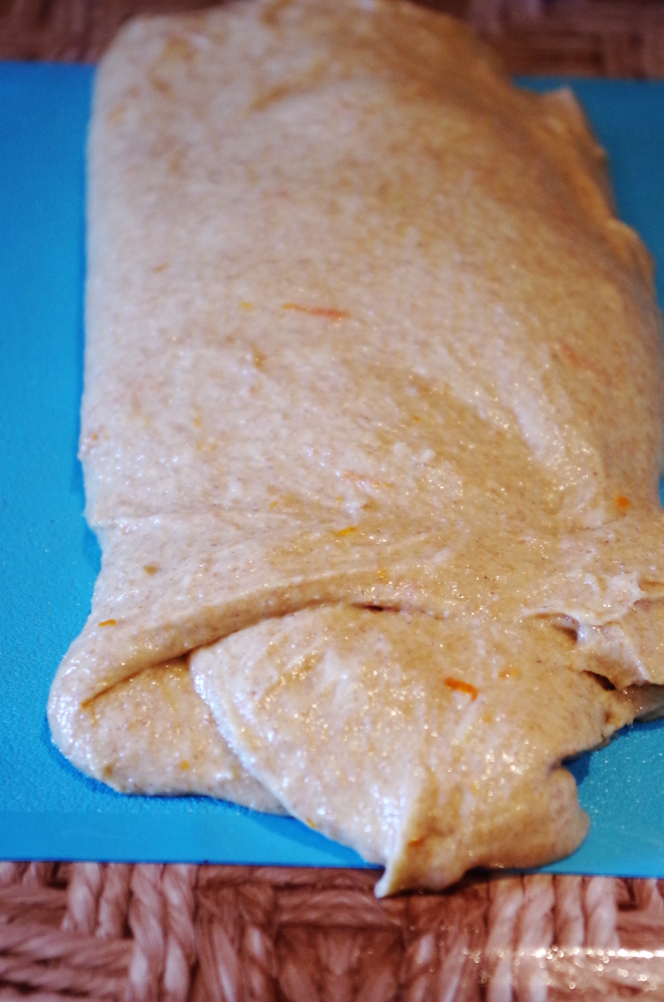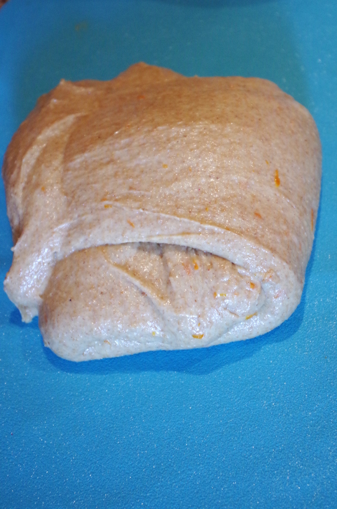 Кстати, про складывания. Известно, что у нас всегда было принято именно обминать тесто, сминать, сдувать, выбивать пузыри, иногда даже не подкатывая его потом в шар. А вот европейцам характерно именно это «складывание», бережное, аккуратное, чтобы не нарушить структуру теста и сохранить пузыри. Это очень простая операция: тесто выкладывается на рабочую поверхность, подпыленную мукой или смазанную маслом, и растягивается в прямоугольный пласт. Затем одна сторона, та, которая ближе к себе, чуть растягивается на себя и переносится к середине. То же самое с противоположной стороной, только растягивается уже от себя, а переносится, опять же, к середине, внахлест. То же самое и с боковыми сторонами: левая растягивается влево, и кладется к центру, правая — вправо, и внахлест к центру.