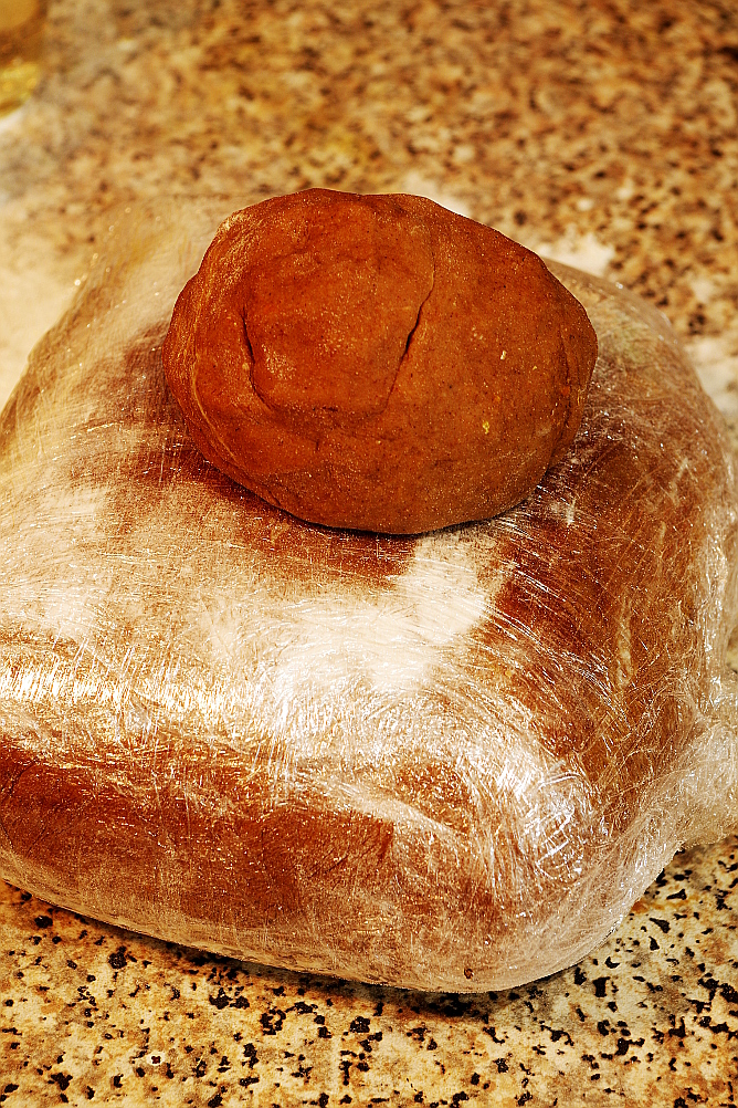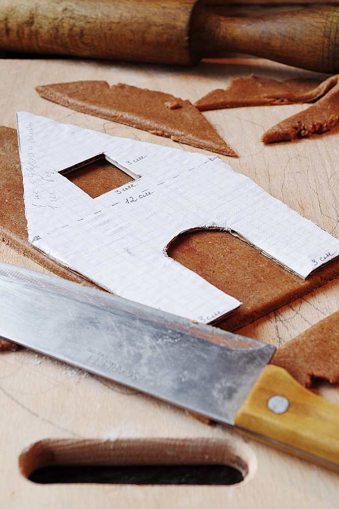 1) Первым делом приготовьте тесто. Пока оно будет отлеживаться в холодильнике, вы как раз успеете распечатать и вырезать схему домика.