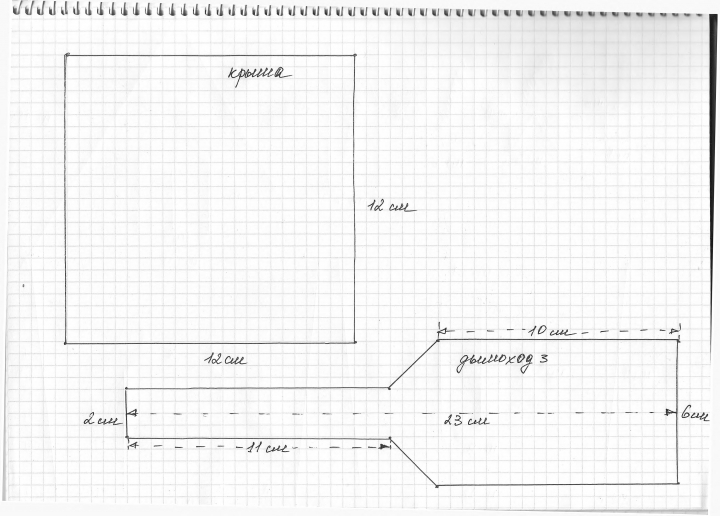Лена, здравствуйте! а куда должна крепиться длинная часть дымохода? я что то не могу догадаться... Сделала сегодня выкройку, готовимся с сыном в выходные делать домик