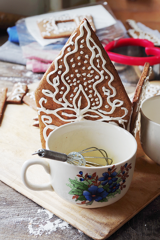 Лена, здравствуйте! Я в этом году тоже пекла пряничные домики, детям в подарок на Рождество. Хочу поделится хитростью - скрепляю их сначала булавками, затем швы промазываю глазурью, держится очень хорошо. А рецепт мой похож на Ваш, но я кладу пополам ржаную и пшеничную цельнозерновой муку. Тоже очень вкусно получается.