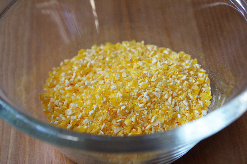 40 гр.кукурузной крупы в соотношении 1:2 по объему или на 30 гр. крупы возьмите примерно 130-250 гр. воды. У меня была вот такая крупа: