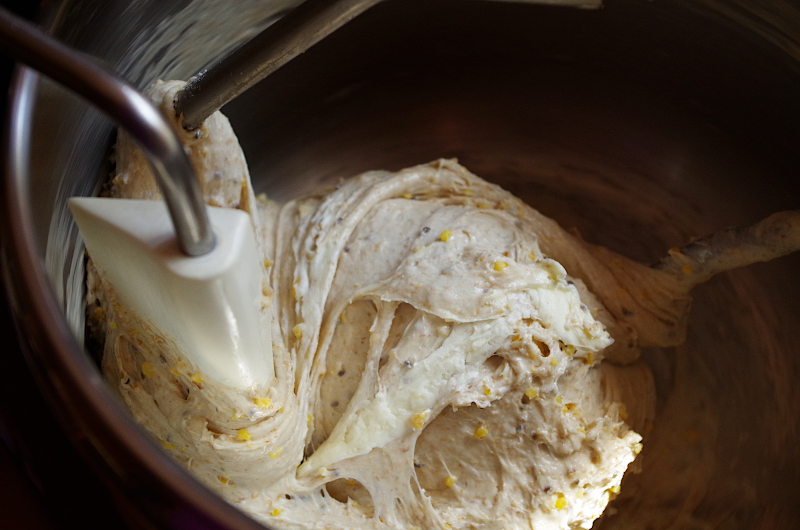 Начался это хлеб с того, что у нас осталась чашка заваренного псилиума с семенами чиа, которую никто не выпил и мне стало интересно добавить ее в тесто вместо части жидкости. Туда же отправились остатки кукурузной каши и картофельный отвар. Я не сумасшедший коллекционер всяких остатков ( к слову, остатки закваски я выбрасываю)), просто мне нравится рационально ее использовать. Например, картофельный отвар, который остается от пюре, всегда можно добавить в тесто вместо воды, это сделает хлеб мягче и увеличит срок хранения. Но то, что с ним делает псиллиум, не описать словами, хлеб получается безудержно мягким и сохраняет эту мягкость очень надолго!