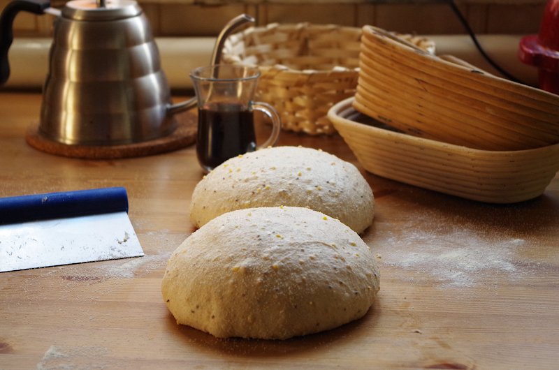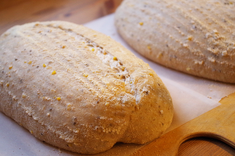 кукурузная каша заменилась пшенной кашей за неимением кукурузной в продаже; после формовки, тесто уложилось в хлебные формы (2шт, формы для бородинского хлеба) и расстаивалось в холодильнике на ночь. Не рискнула использовать корзины, потому что тесто было уже воздушным и не много "плыло" . Хлебушек ( в моем случае буханки) получился действительно мягким, включая верхнюю корочку. Буду печь еще, но уменьшу количество воды и тогда же попробую использовать растойку в корзинах. Еще раз спасибо за рецепт!