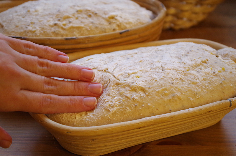 Сформуйте овальные буханки и уложите на расстойку в корзинки швом вверх или на ткань швом вниз.