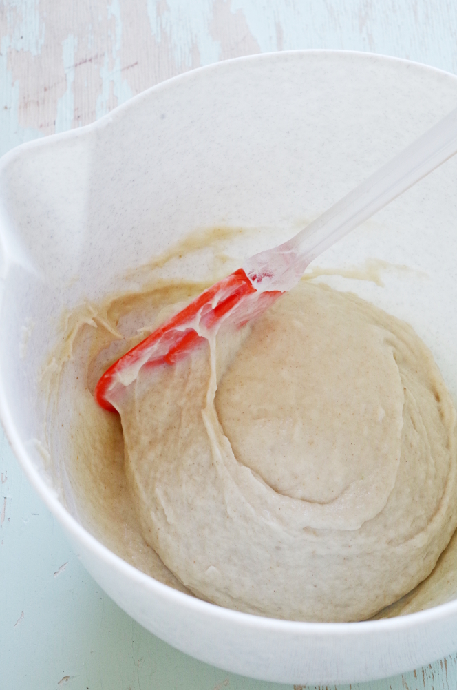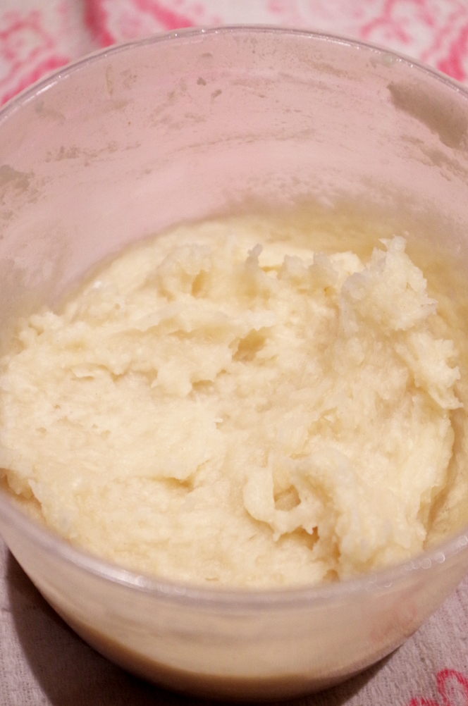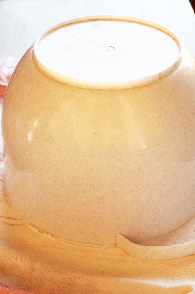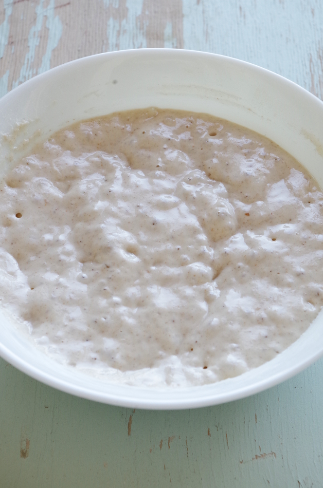 Перемешиваем до однородности и хорошо накрываем. Даем ей созреть в течение 4-5 часов при температуре около 27 градусов. Она поднимется и на поверхности начнут проступать пузыри.