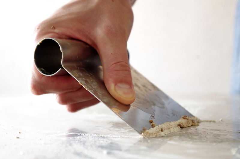 - Ну, и еще одно очевидное применение скребков-шпателей с металлическим полотном - очистка рабочей поверхности от налипшего теста и муки.