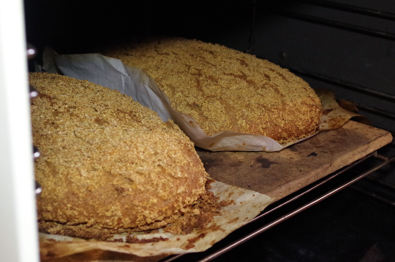 Друзья, привет! Я на низком старте, сегодня вечером уезжаю в Москву, а оттуда в Питер, а в Питере меня ждет прекрасное событие - мастер-класс Джеффри Хамельмана! А до этого нужно еще собрать рюкзак, забрать сына из бассейна, испечь печенье, поехать всем вместе на День рождения одноклассника,вернуться домой)) А пока - рецепт в блог! Многим этот хлеб понравится, потому что он ржаной, но на пшеничной закваске, и без брожения, притом, это не собственная придумка, а рецепт из книжки маэстро Хамельмана! От себя я добавила в тесто льняного жмыха, который остался после давки масла, и корку им обсыпала. Ну а что делать, надо ж его куда-то девать, тем более, он полезный!)) Но, если у вас нет жмыха - не проблема, можно и без него или заменить смолотым льном. Получается добротный честный ржаной хлеб, вкус которого напоминает Украинский ржаной, который продавался, когда я была еще ребенком. Мы с братом отрезали горбушку и натирали ее чесноком с солью и это было невероятно вкусно!