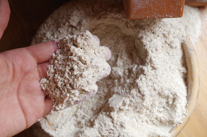 Дальше процесс почти волшебный: смалываю свежую муку!