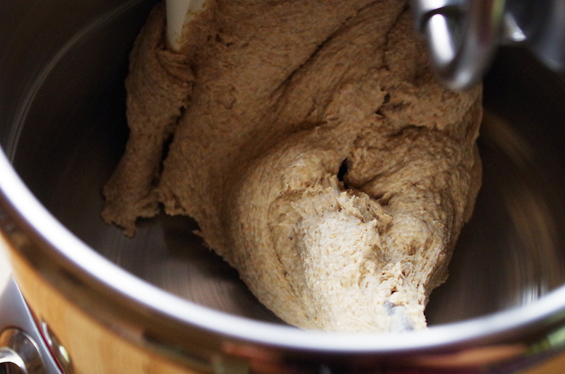 Взвешиваю все необходимое, если под рукой есть картофельный отвар, столетнее пиво, которое никто никогда в жизни не допьет, или остатки молока - все идет в хлеб! Замешиваю в Ankarsrum на 2-2,5 скорости, замес длится минут 30, стараюсь не меньше.
