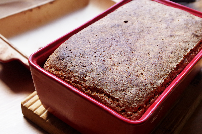 После замеса тесто отправляется сразу на расстойку в форму! В рецепте керамическая форма-хлебница с крышкой Emile Henry.