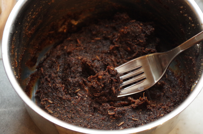 Смешайте муку, солод и специи, залейте почти-кипятком и перемешайте. Масса сначала будет жидкой, потом по мере клейстеризации крахмала начнет становиться вязкой и более густой. Накройте подходящей крышкой, оставьте в духовке на 3 часа при температуре 65-70°, остудите.
