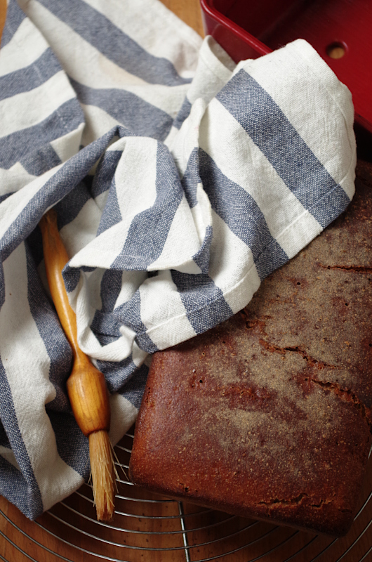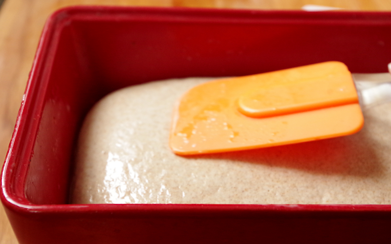 Я расстаивала в прямоугольной керамической форме-хлебнице Emile Henry, предварительно нагрев форму и натерев пчелиным воском.