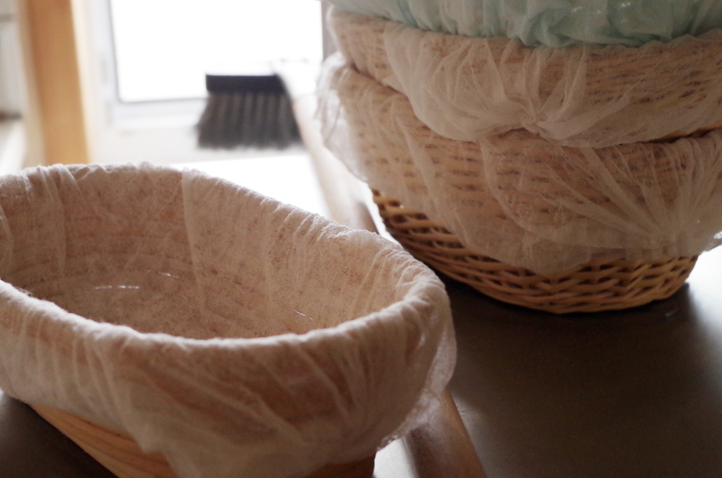 В идеале специальные хлебопекарные, а если хотите красивые модные полоски на хлебе - то ротанговые. И одноразовые нетканные шапочки для волос. Шапки нужны не только голову покрывать, но и корзинки выстилать, они неимоверно удобные!