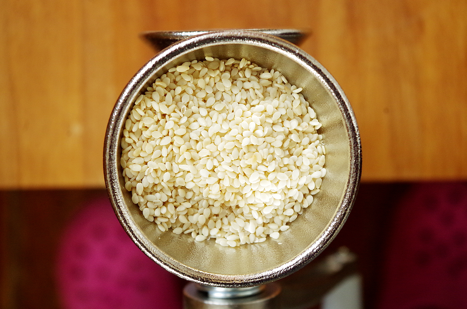 Кунжут тоже прекрасно себя показал, перетерся в мягкие тонкие масляные хлопья, которые, если потереть между пальцами, начинают размазываться.