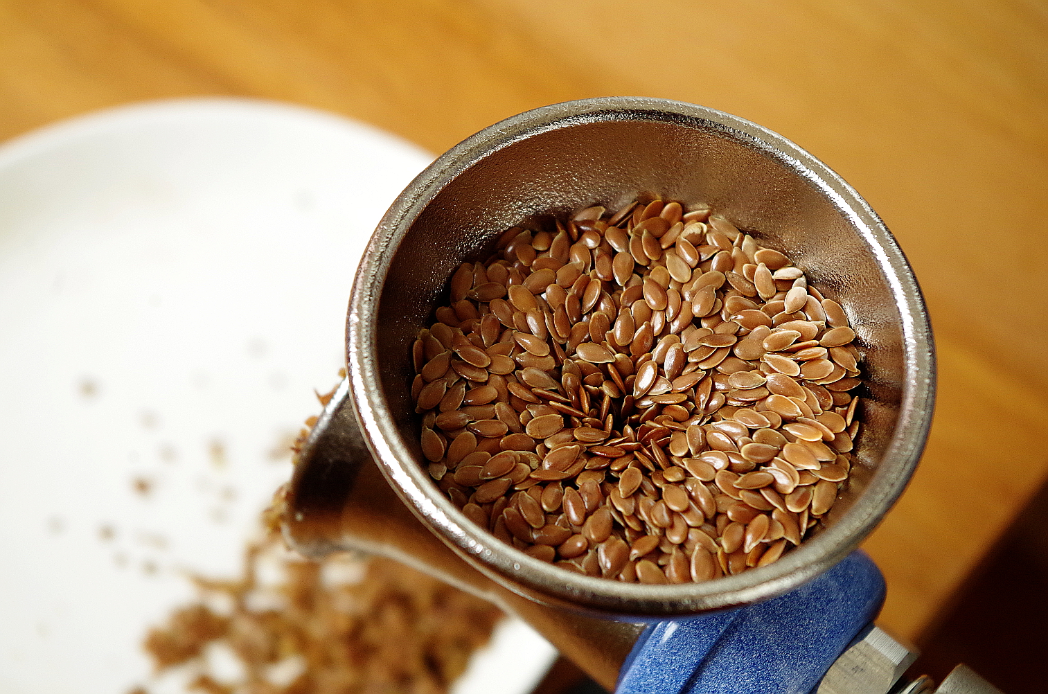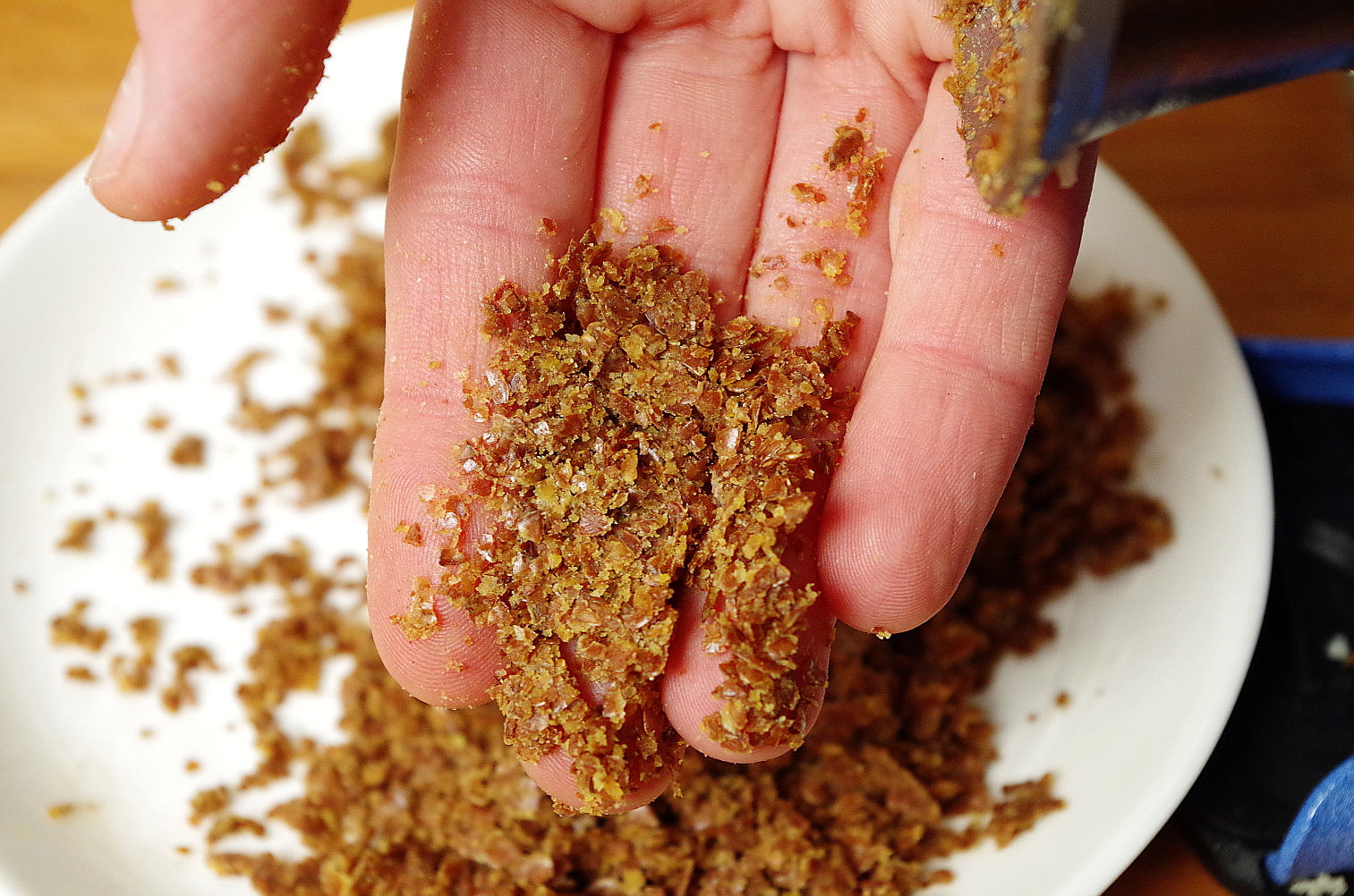 ЛеУ льна более жесткая структура, его внешняя оболочка более прочная, поэтому хлопья получились грубее, но все равно хорошо расплющились!
