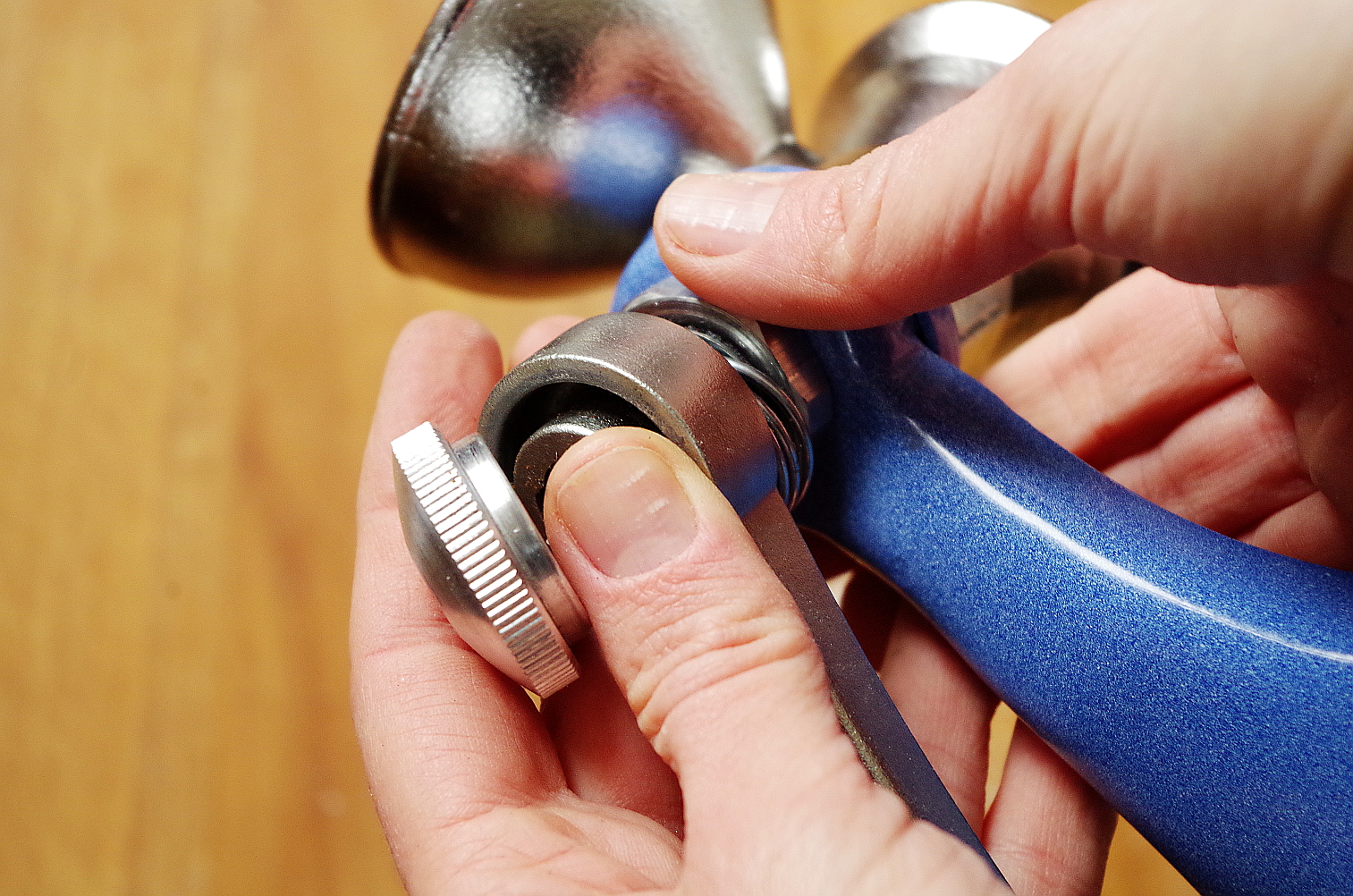 Перед тем, как приступить к тесту, хочу немного рассказать о ручной мельнице Jupiter. Первое, что бросается в глаза – она очень маленькая! И тяжелая! Напоминает старые макотерки, которые продавались еще при союзе, но, кажется, еще меньше. Она очень просто устроена: чугунный корпус, внутри сталныые жернова, на которые крепятся маленькая металлическая тонкая круглая штучка, не знаю, как называется, пружина, с помощью которой регулируется крупность измельчения, ручка и шайба для фиксации ручки. Все! Даже мне понятно, как это работает! Все детали чугунные (кроме круглой маленькой тонкой штучки), прочные, легко чистятся и моются.