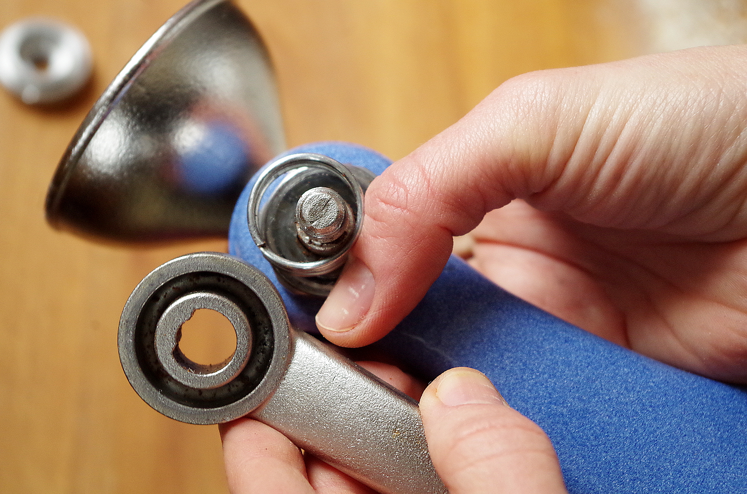 Ручка легко снимается, за ней пружина и маленькая круглая тонкая штучка :)