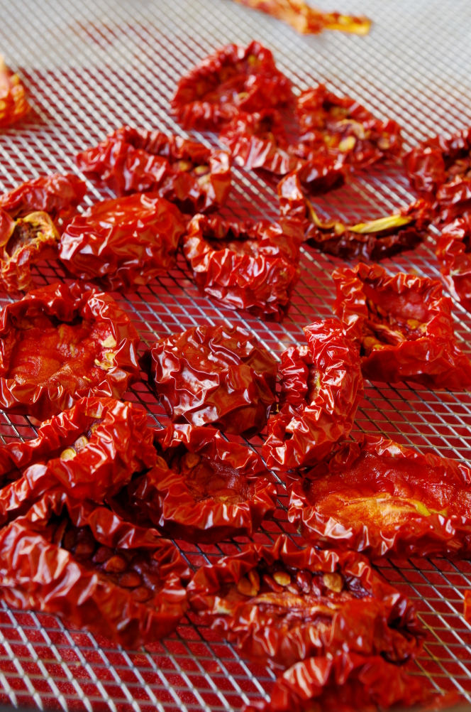 Недавно в своей сушилке Stockli Dorrex Pro T делала неожиданную штуку — томатную пастилу. Получилась, как концентрированая томатная паста, очень помидорная, только интереснее. Не думаю, что ее стоит есть просто так, как обычную сладкую пастилу, но вот в качестве заготовки очень даже. Ее хорошо добавлять в борщи-супы, к различным спагетти-макаронам, мне кажется, ее даже можно в бутерброды и сендвичи вместо соуса, и капать не будет, и яркости вкусу добавит вместо, к примеру, кетчупа. За одно сушила помидоры, брала обычные мелкие типа сливок и крупные розовые, от семечек не очищала, специй не добавляла, питала надежду, что приправлю, когда буду заливать помидоры маслом. Но, скажу честно, до этого этапа они просто не дожили и были съедены за пару часов просто так, как чипсы, потому что получились хрустящие и вкусные.