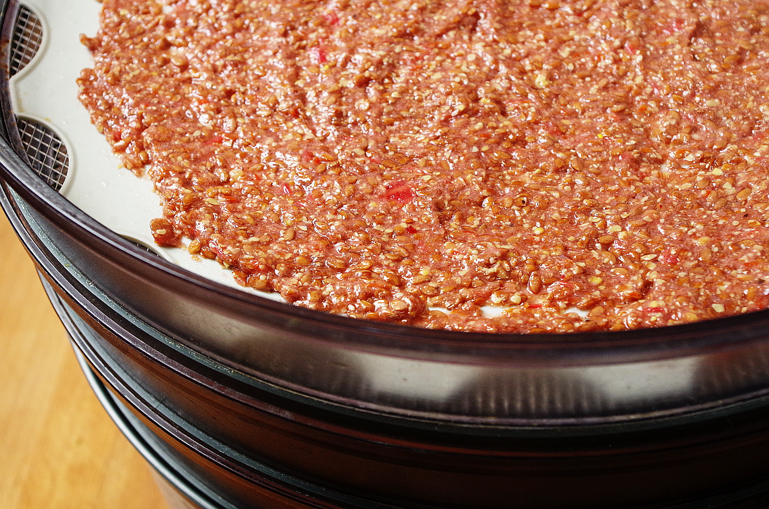 Сушите при 50 градусах около 12 часов. Томатно-льняные блины должны полностью высохнуть и даже хрустеть!