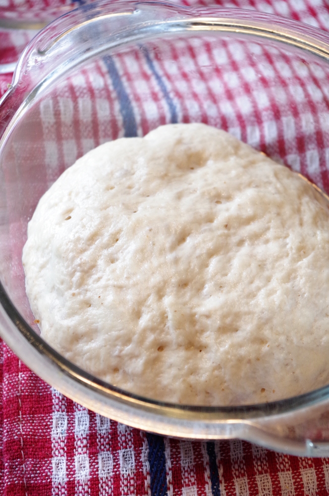 Кладем на расстойку в смазанную маслом прямоугольную форму. Время расстойки 1,5-2 часа. За час до начала выпечки включаем духовку разогреваться до 180 градусов.