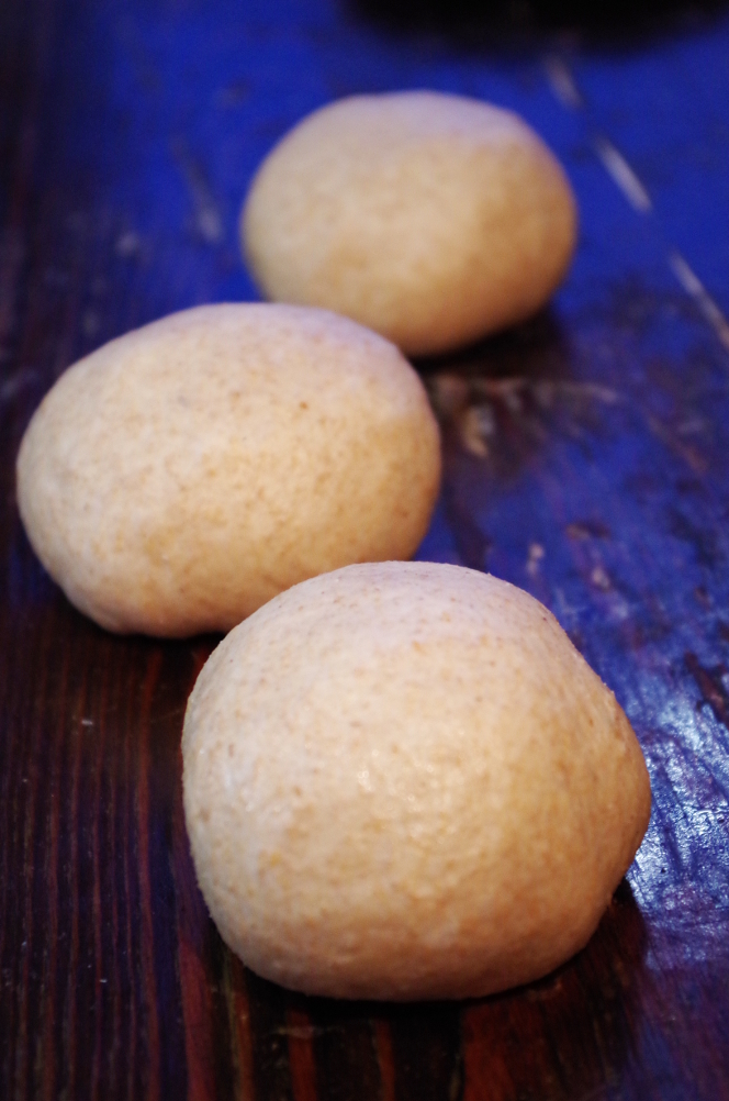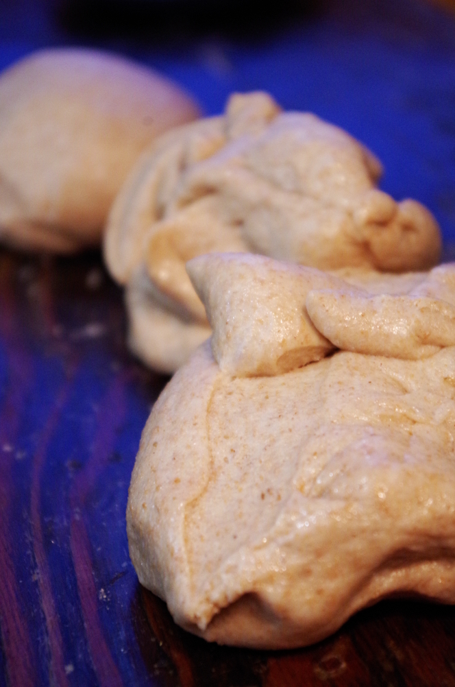 Делим тесто на три одинаковых куска (взвешиваем на весах) и округляем их. Даем отдохнуть около 15 минут, чтоб расслабилась клейковина.
