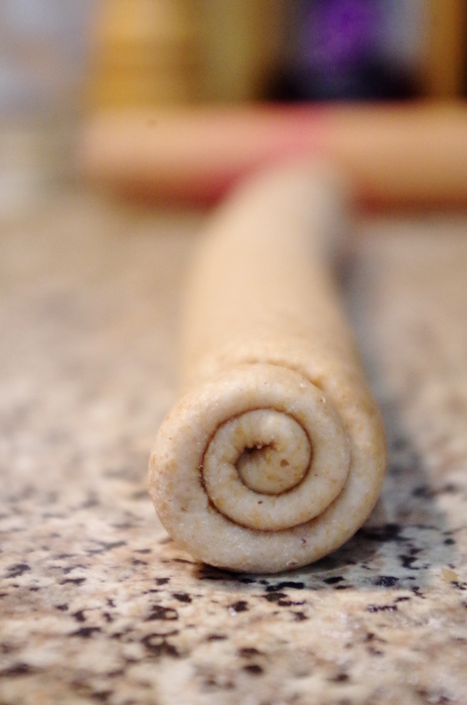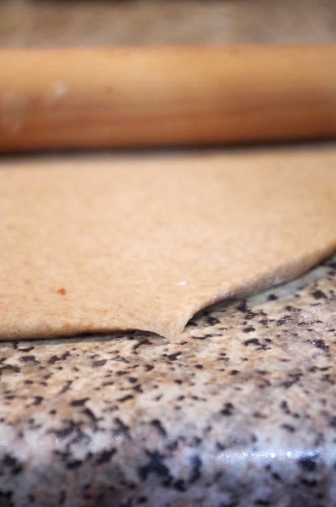 Стол присыпаем мукой, на колобок теста надавливаем рукой, чтоб получилась лепешка, и раскатываем в тонкий пласт. Катаем скалкой от центра к краям, не раскатывая обратно и не сильно надавливая, чтобы не порвать клейковину. Скатываем раскатанное тесто в плотный рулет, защипываем шов.