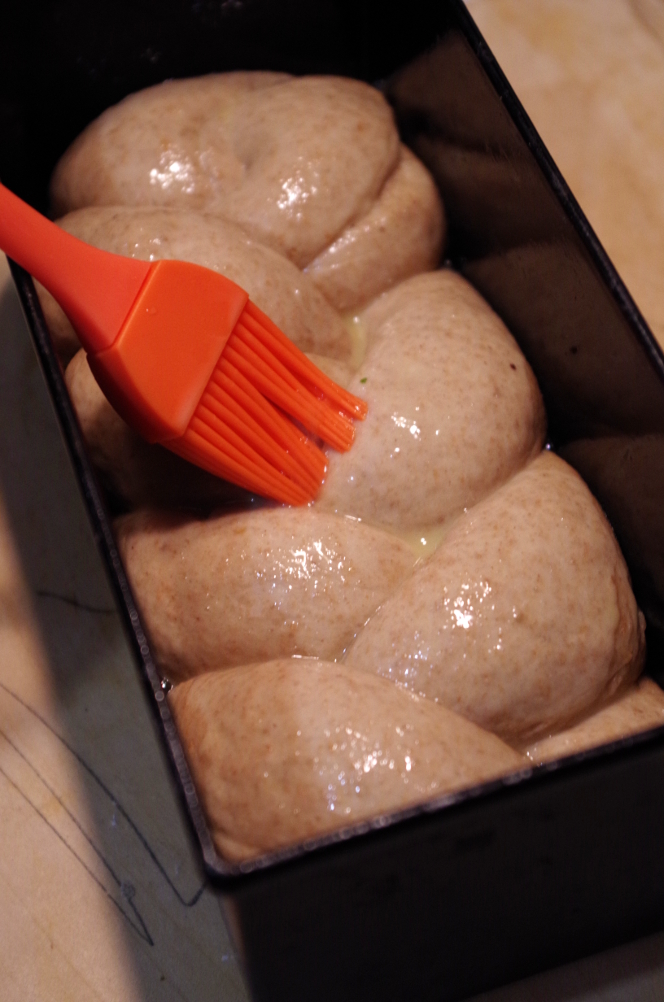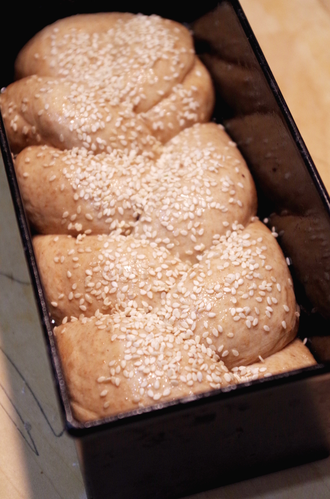 Перед посадкой смазываем халу яйцом и посыпаем кунжутом или маком, или ничем не посыпаем.