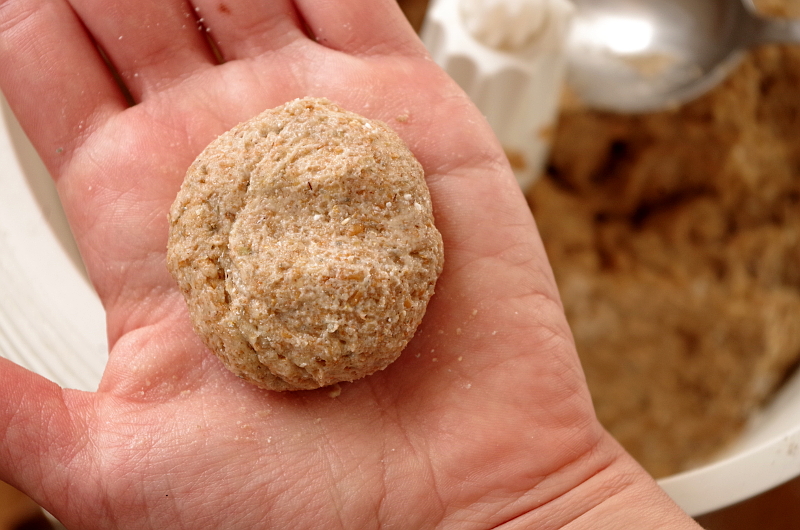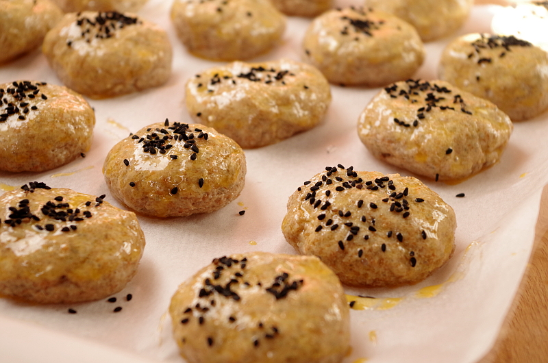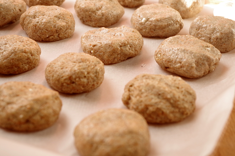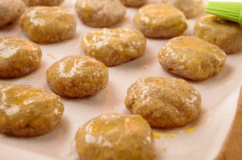 - Мокрыми руками сформуйте круглые или овальные печенья-булочки.