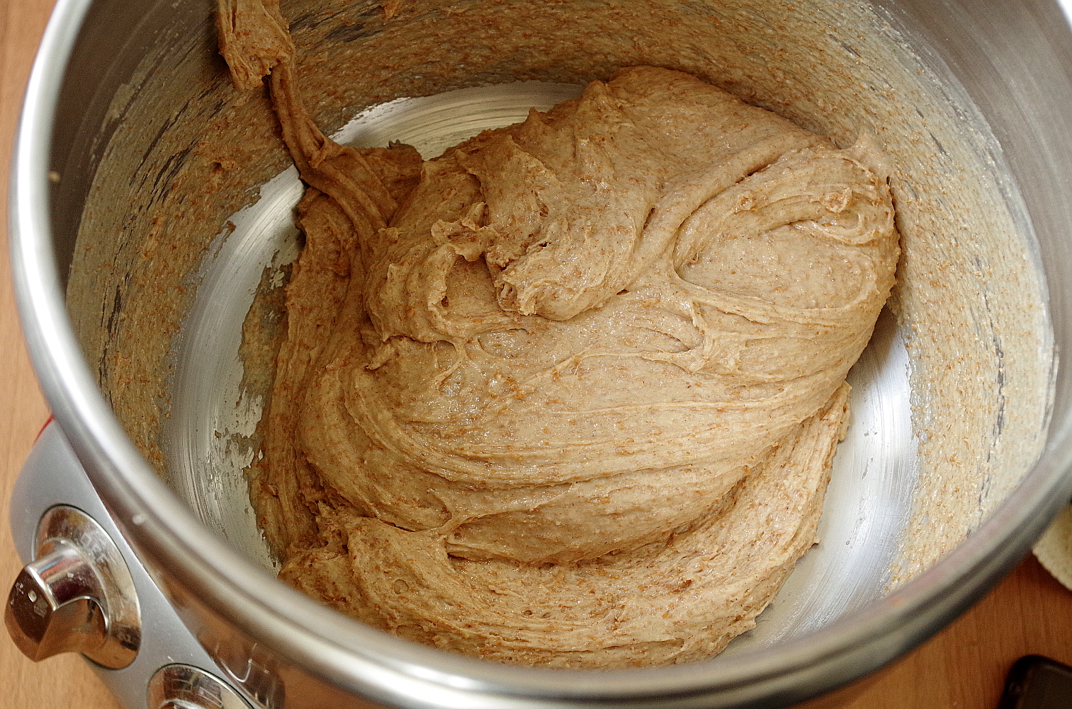 Брожение около 3,5 часов при комнатной температуре, тесто увеличится в объеме и расплывется.