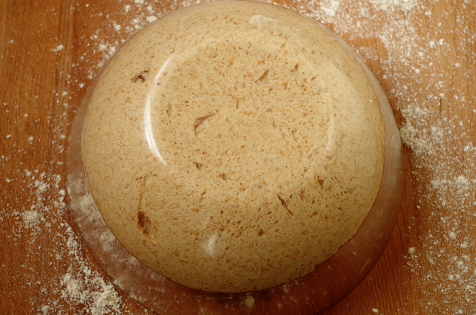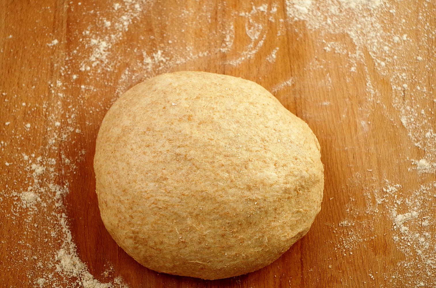 Достаньте подошедшее тесто из миски на присыпанный мукой стол, округлите, оставьте на 10 минут, чтоб клейковина расслабилась.
