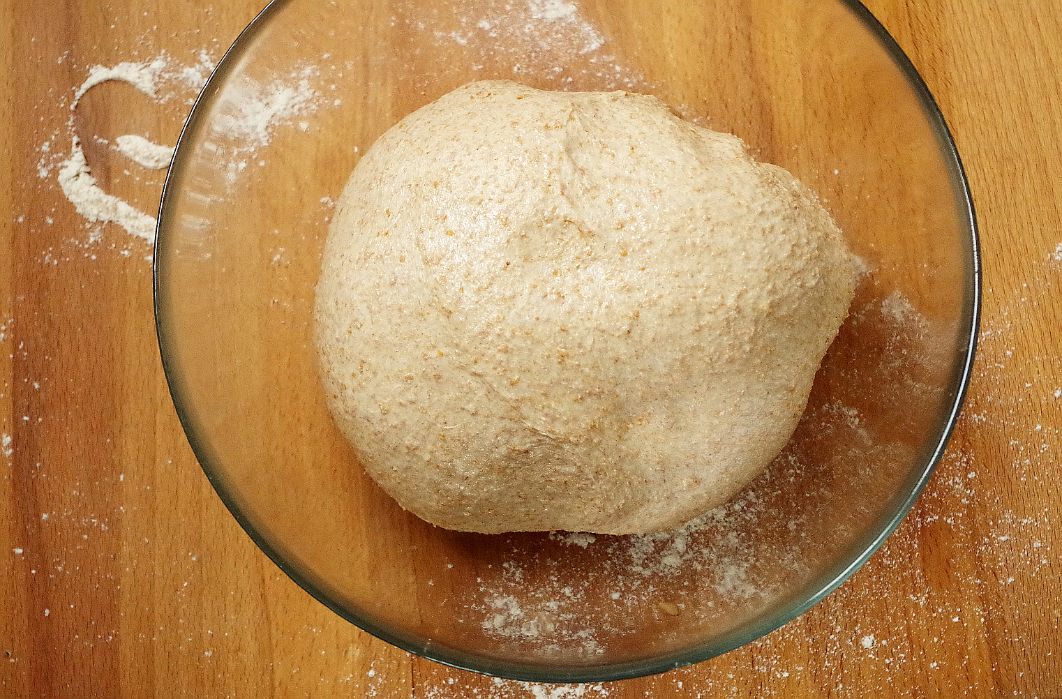 Достаньте тесто, округлите и положите в чистую миску, смазанную растительным маслом. Желательно, чтобы миска была с прозрачными стенками, чтобы вы наглядно могли видеть, как растут пузыри внутри тесте. Емкость с тестом затяните пленкой или накройте крышкой, поверхность теста не должна сохнуть.