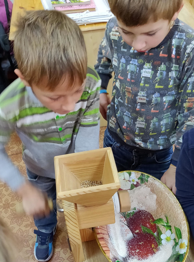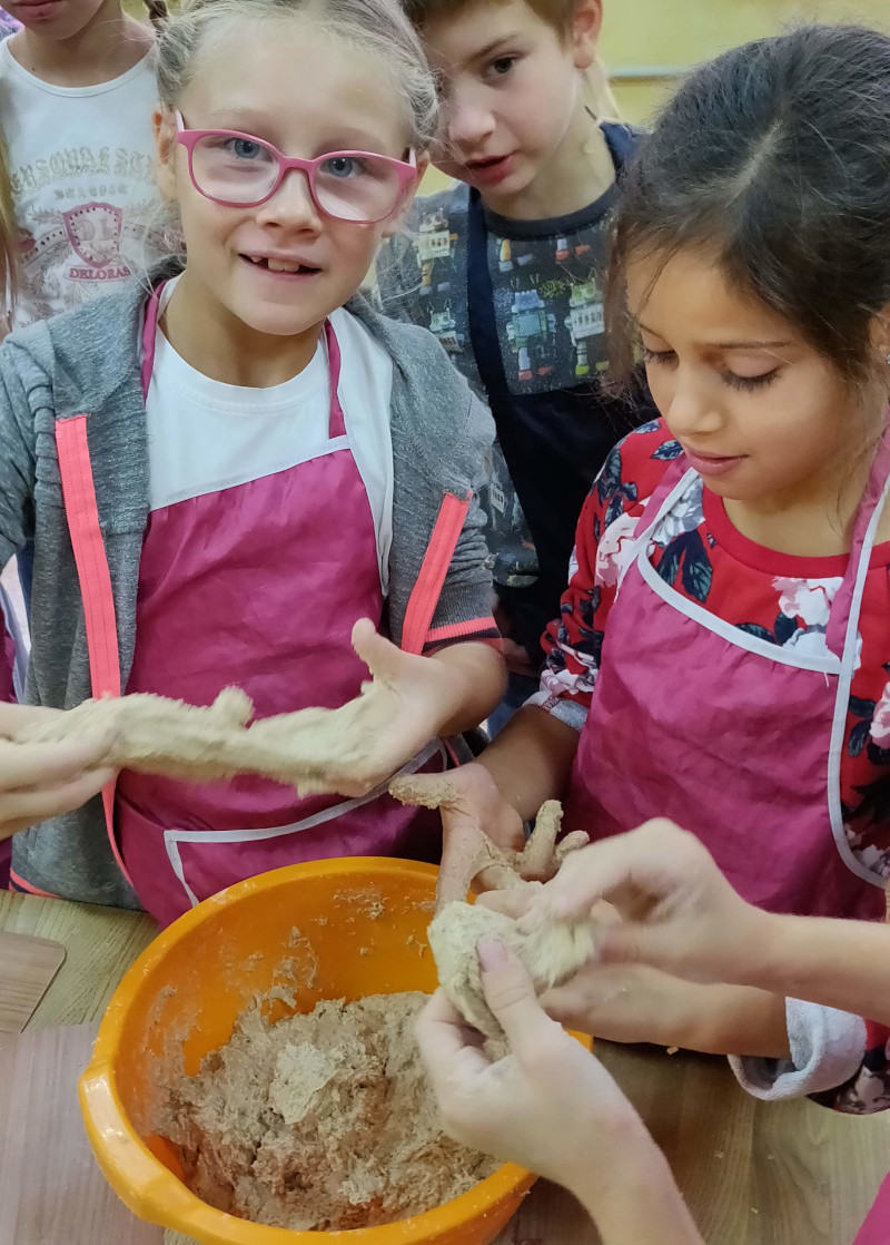 А недавно, кстати, в классе у моего сына я проводила хлебный урок: мы с детьми молоди муку, месили тесто, лепили маленькие хлебушки и пекли! Вы не представляете, какую фантащию и чутье проявляют дети, работая с тестом! Их никто этому не учил, они ни с кем не договаривались заранее, просто каждый решил сделать так, как хочется, как нравится!