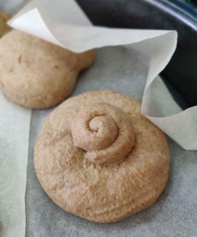 Дайте расстояться около 2,5-3 часом при температуре 25-27°., перед выпчекой смажьте яйцом.