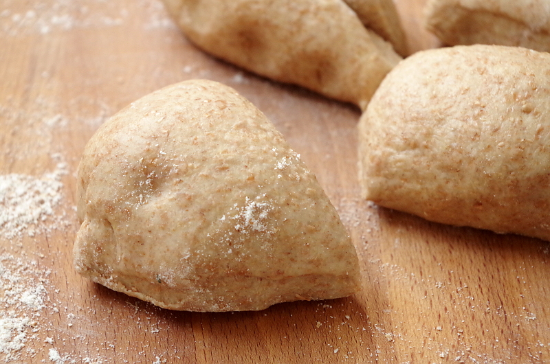 - Округлите кусочки, надавите пальцами, чтоб получились лепешки и дайте 20 минут отдыха, накрыв пленкой, чтоб поверхност не сохла.