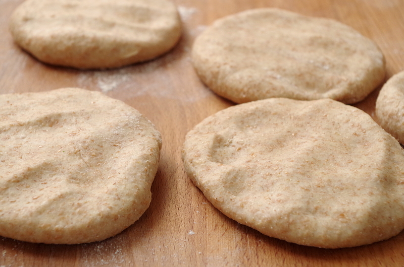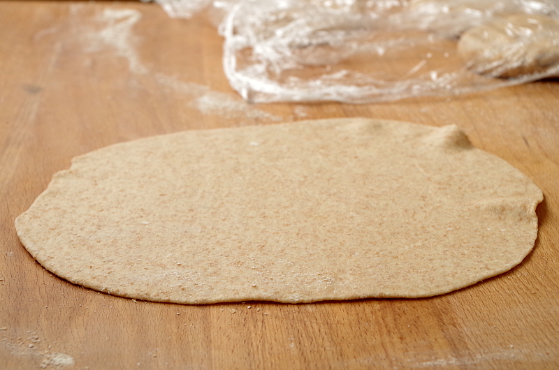 - Тонко-тонко раскатайте лепешки, совсем слегка припыливая стол мукой. В процессе раскатки периодически переворачивайте тесто, чтоб оно не прилипало к столу. Раскатав, переверните еще раз.