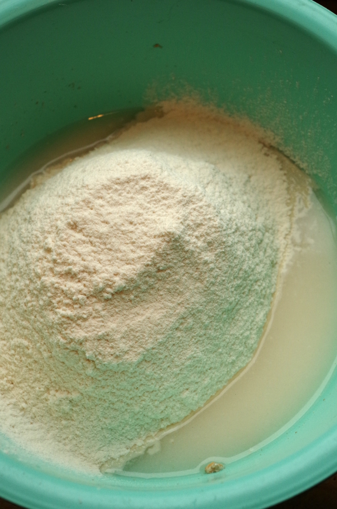 Закваску взяла прямо из банки и распустила ее в теплой воде, где предварительно растворила мед.