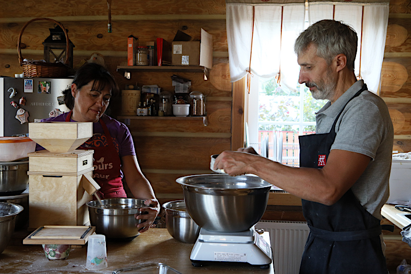Привет, друзья! Я давно хочу, чтоб у нас в блоге появлялось больше рецептов от интересных пекарей, чтоб больше светлых пекарских лиц радовало читателей блога, даже специальный тег в инстаграм придумала - #breadsfriends. И вот постепенно я реализую свои идею. Сегодня расскажу об одной очень душевной подмосковной пекарне Олега и Ольги Шелеховых @shelekhov.hleb, в которой мы побывали в августе вместе с Артуром и Машей. Шелеховы пекут хлеб на закваске в дровяной печи прямо у себя на даче в поселке под Чеховым. Они построили свой дом мечты - красивый деревянный сруб, и в нем обустроили домашнюю мини-пекарню. Там они смалывают зерно на домашней мельнице (у них Billy200), а для выпечки используют фермерское сливочное масло и безумно ароматный мед, причем, половину работы выполняют вручную и делают это так красиво, что невозможно отвести глаз!