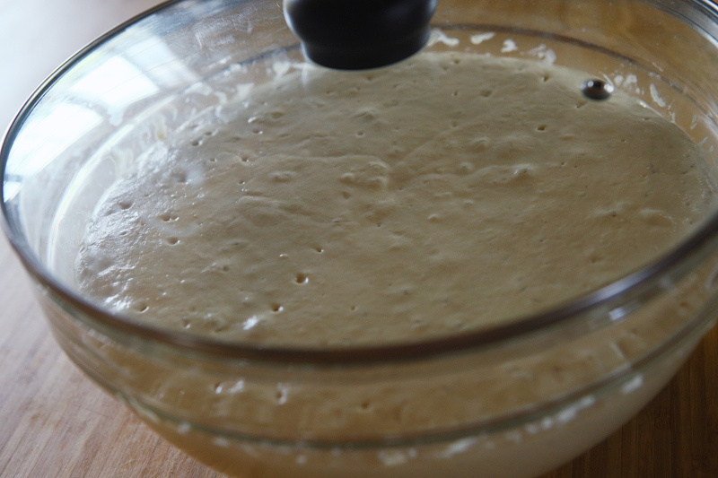 Перемешайте все, оставьте бродить на 5-7 часов при температуре 23-25°. Опара поднимется, будет пористой и ароматной.