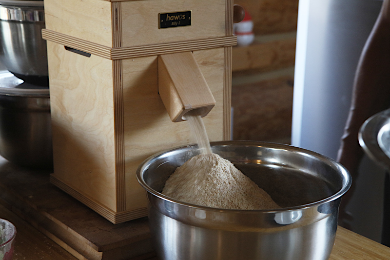 Сделайте свежую цельнозерновую муку, если у вас есть домашняя мельница. При желании просейте муку от отрубей и смешайте с белой мукой и солью. Если у вас нет мельницы, по возможности используйте цельнозерновую муку жернового помола с датой производства не старше 2 мес.