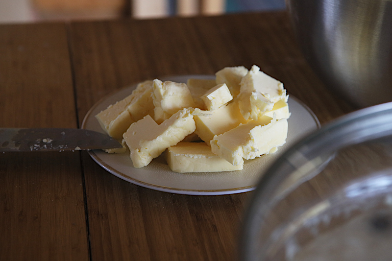 Внесите кусочками сливочное масло и перетрите руками в крошку.