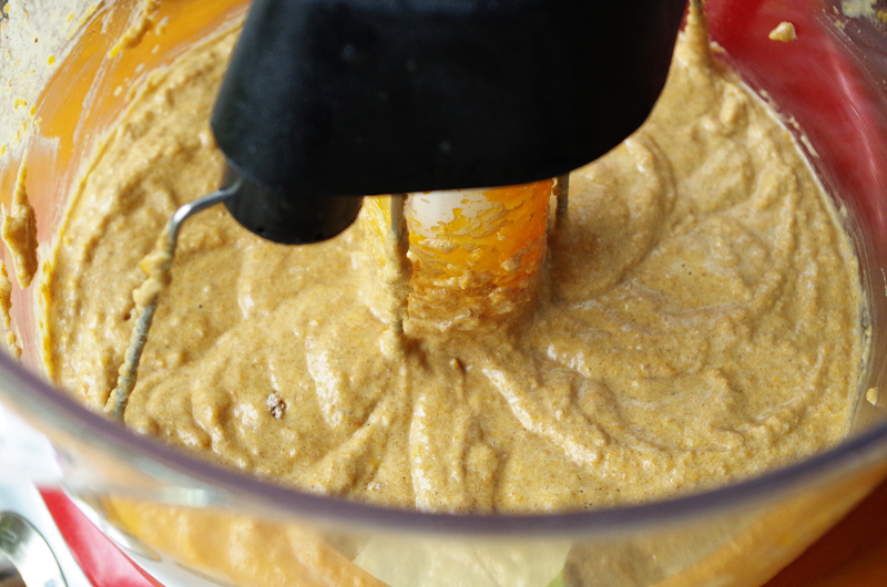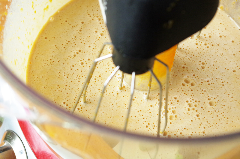 Введите тыквенное пюре, не останавливая миксера.