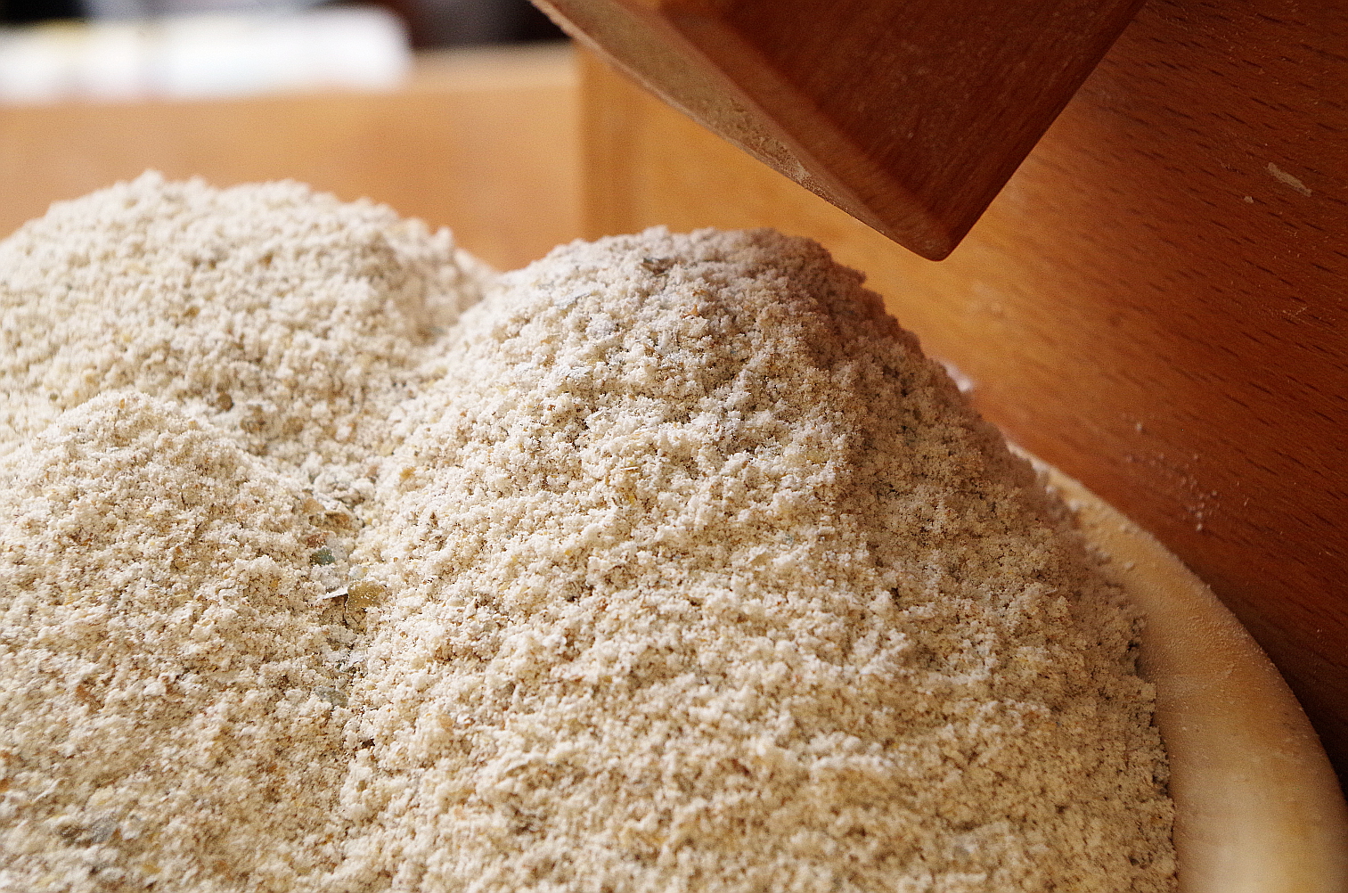 Перед замесом я смолола рожь и пшеницу на своей мельнице Hawos Queen1. На нее, кстати, сейчас скидка!
