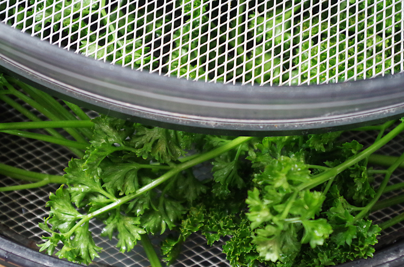 Смотрите, что было дальше: достала свою сушилку StockliDorrex Pro T, вымыла зелень, отрезала и выбросила некрасивые участки, местами чуть измельчила.