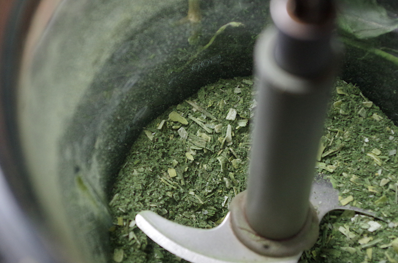 После того, как высушила зелень, сложила ее в блендер и хорошенько вжикнула.