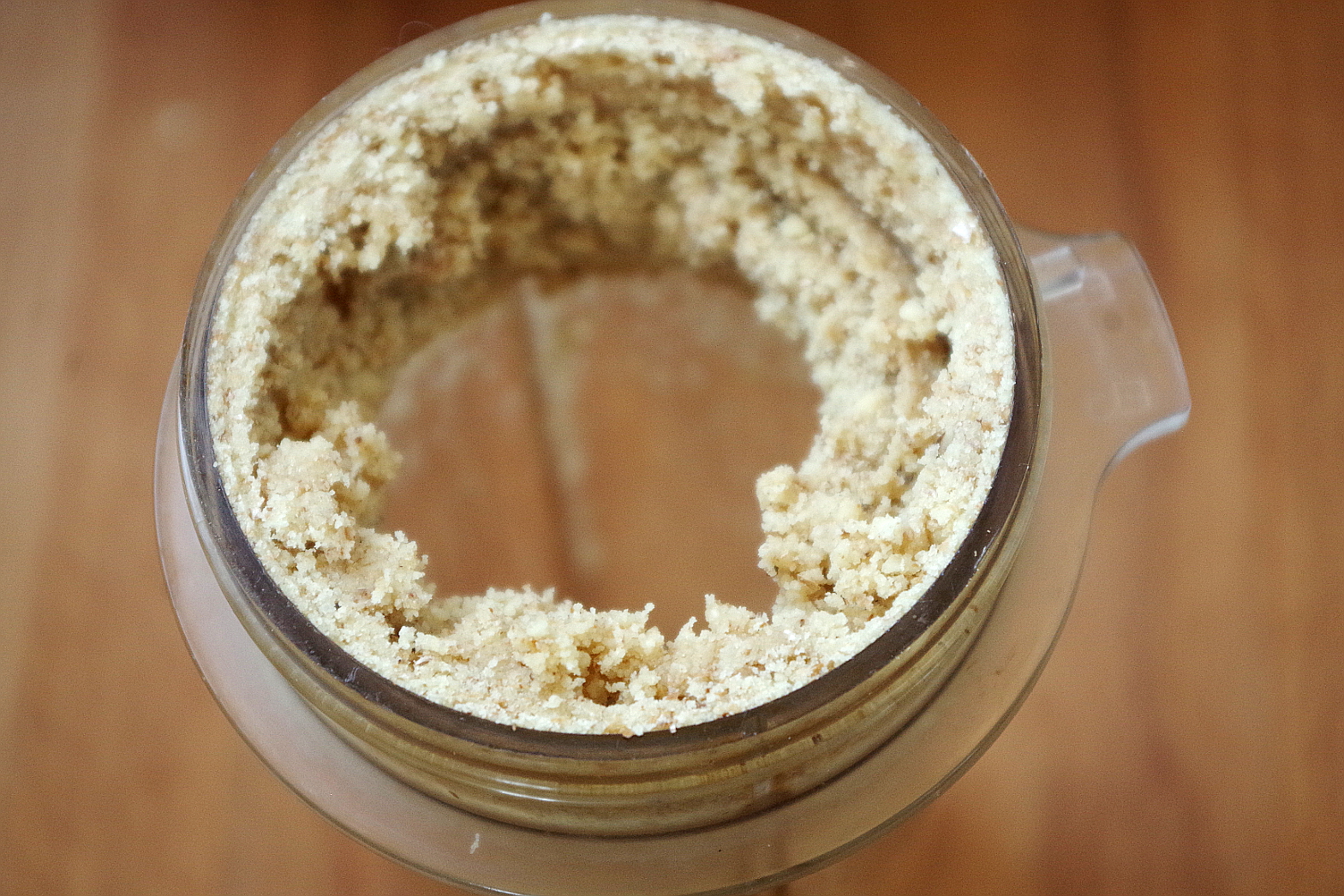 Стакан у моего блендера высокий и узкий, для смузи это идеально, а вот, если очень плотно заполнить его чем-то легким типа зелени, содержимое будет упираться в стенки и не очень охотно продвигаться к ножам. Если у вас тоже так – масло вам в помощь и вот такая поочередность действий.